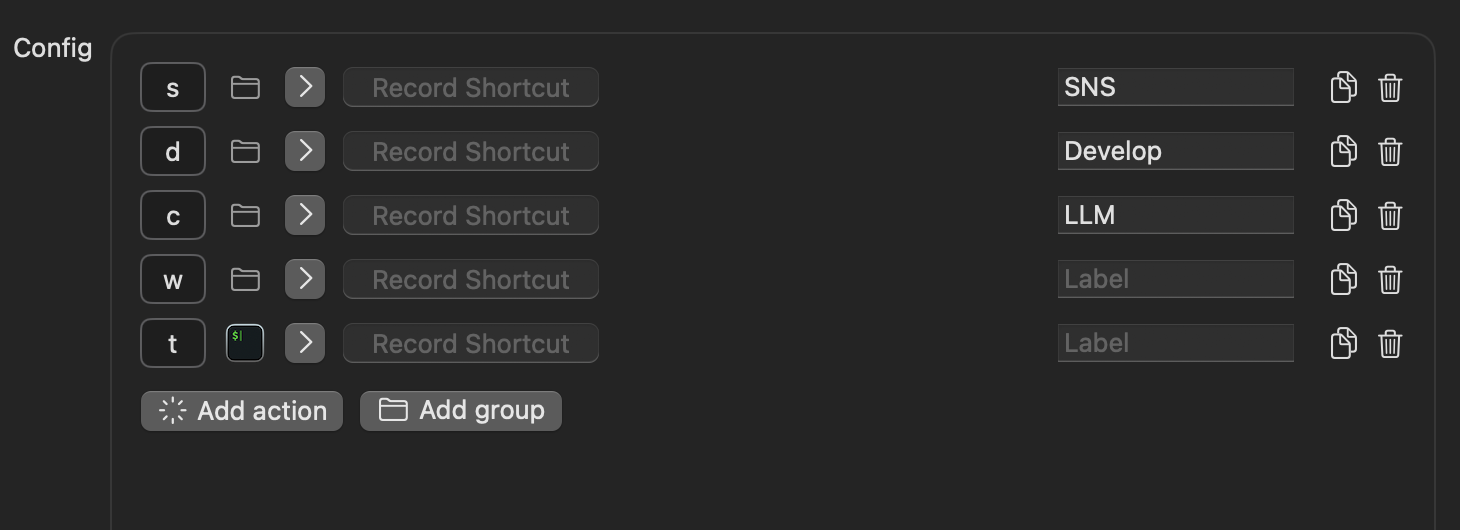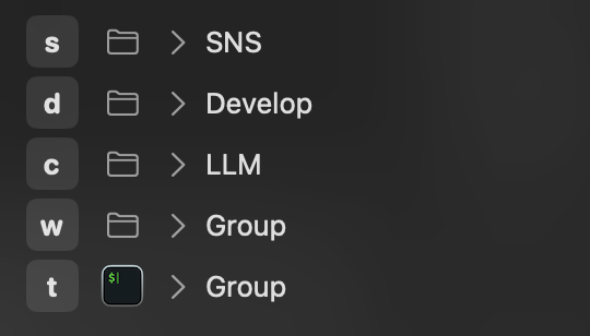 - Command : Leader Key가 실행 할 Command 인데 Leader Key에서 직접 Command 명령어로 실행 하기에 자주 쓰는 명령어는 Application 을 open /Application/ChaptGPT.app 이런식으로 사용 할 수 있다.